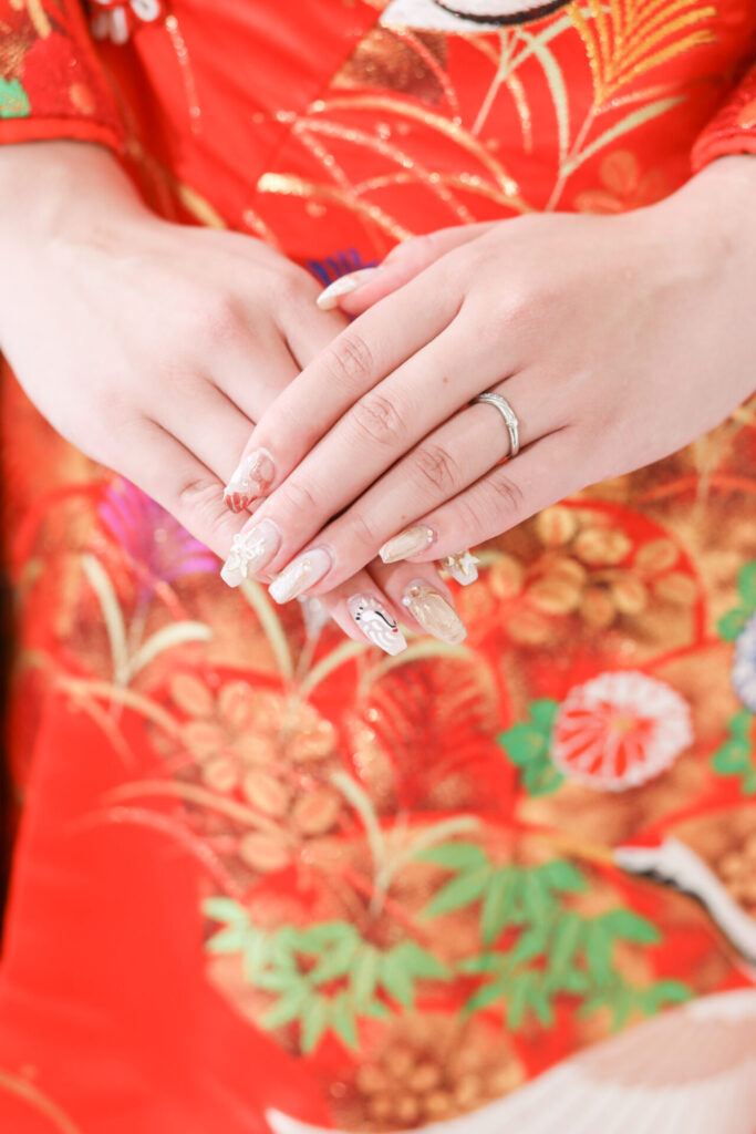 衣裳や小物のカラーに合わせたネイルとってもかわいいです♡